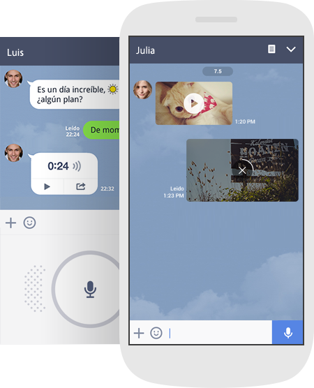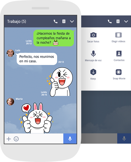 LINE te permite compartir tu ubicación, fotos, videos, mensajes de audio, números de teléfono, y mucho más.